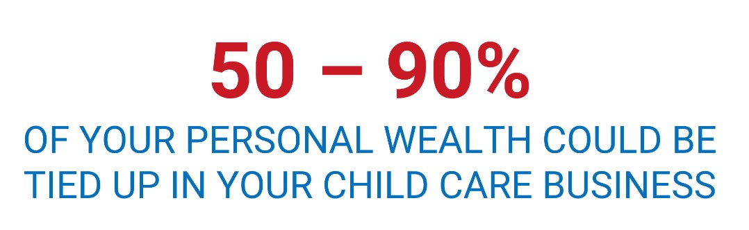 Surveys have shown that childcare business owners, no matter how small or large, often have a substantial portion of their personal financial net worth tied to their childcare business and associated real estate (buildings and land) if owned. Owners often indicate that their childcare business value comprises between 75% and 90% of their personal net worth, particularly if they own their childcare building and land.