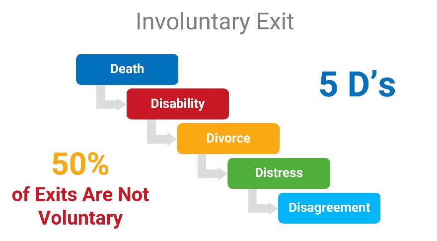 Although the reasons for exit planning are numerous, 50% of all business owners will exit their business involuntarily—or what is often referred to as the five D’s. Why? Lack of exit planning.