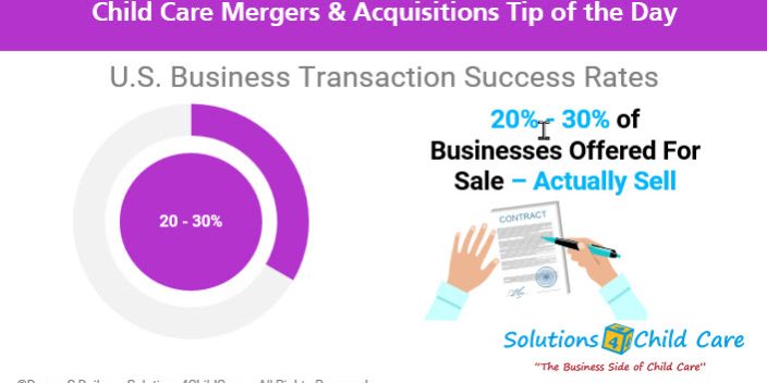 In selling child care businesses for 30 years, I have observed that planning and preparing the business for sale well in advance has a substantial impact on its value and the ability to successfully market and sell it. We encourage all child care business owners to work with professional child care business consultants and child care business Exit Planning experts to plan and position their businesses for a successful transition.